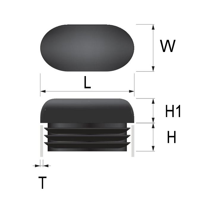 Same PE (polyethylene) body and flexible grip as every oval tube plug in the range. The only difference is the head profile. Domed oval tube plugs are molded from a single piece of PE with no joints, seams, or separate components. Domed plugs for oval furniture legs that combine a decorative rounded head with an engineered friction-fit body.