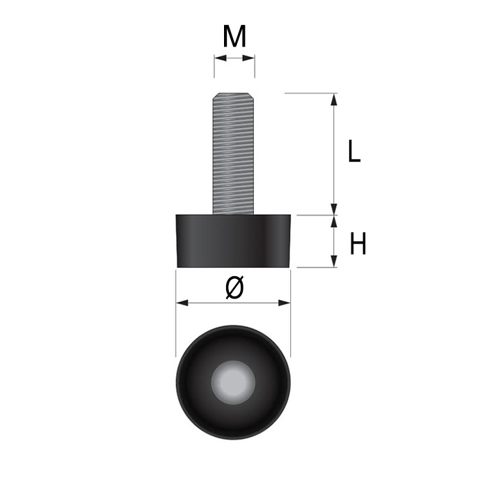 POM has higher stiffness than PA. At Ø 13 mm, the base is only 133 mm² of floor contact. Under a 60 kg load, the pressure per square millimeter is 0.45 kg/mm², which is significantly higher than larger bases. POM’s superior dimensional stability prevents deformation at this pressure concentration. POM also has a lower coefficient of friction than PA, allowing smooth floor contact despite the small surface area. Mini leveling feet M6 that maintain precision at the smallest scale.