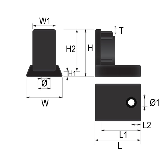 Not all sled base furniture uses round tube runners. Some designs use rectangular tube profiles for a different aesthetic or structural purpose. Rectangular tube end sled base glides cap the open end of 20 × 30 mm rectangular tube sled runners, sealing the tube opening and providing flat PA floor contact at the runner endpoint. The end glide slides over the rectangular tube end and is secured with one screw. The internal cavity is shaped to match the rectangular tube cross-section, providing a snug fit that keeps the end glide aligned and secure on the tube.